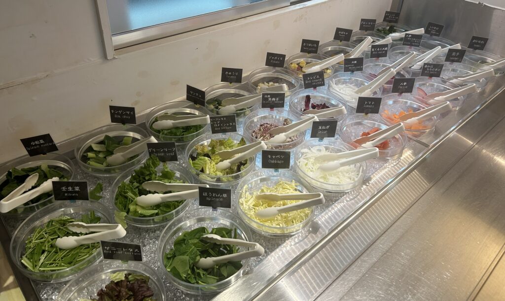 野菜の種類だけでなく、トッピングやドレッシングも多いため、自分好みのサラダを作れるのが魅力でした。