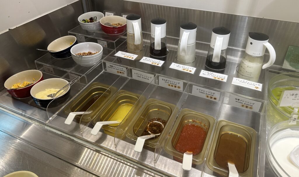 隣に、トッピングやドレッシングも用意されていました。