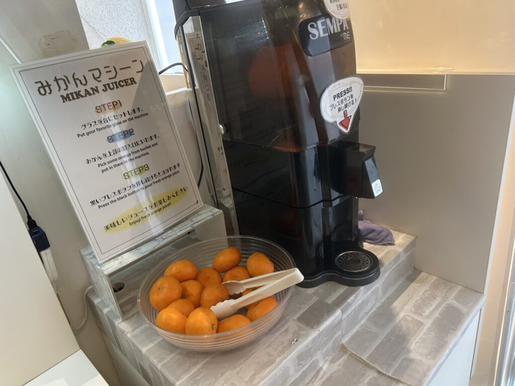 - みかんの生搾りジュースが飲める