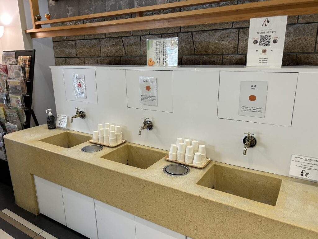 道後ややのフロント前には、蛇口をひねるとみかんジュースが出てくるサービスがあります。