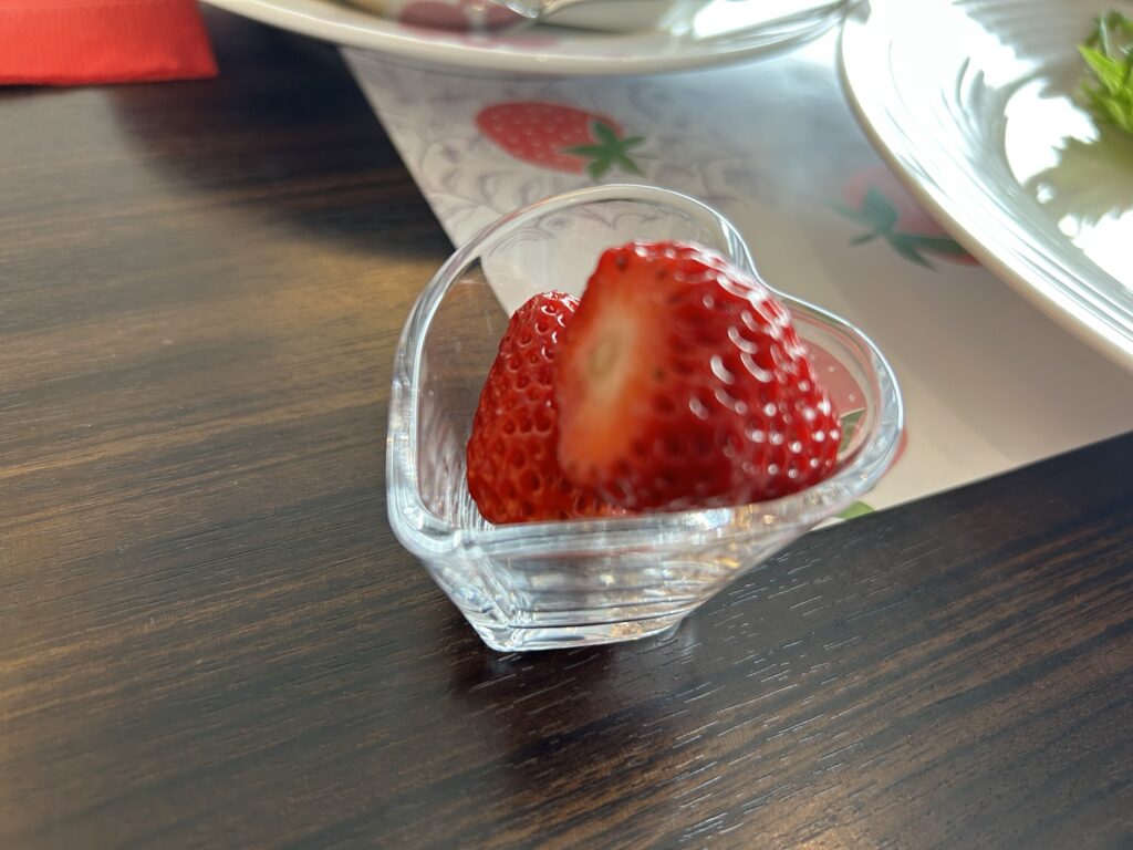 また、途中でフレッシュないちごの配膳もあり、こちらもおいしくいただくことができました。