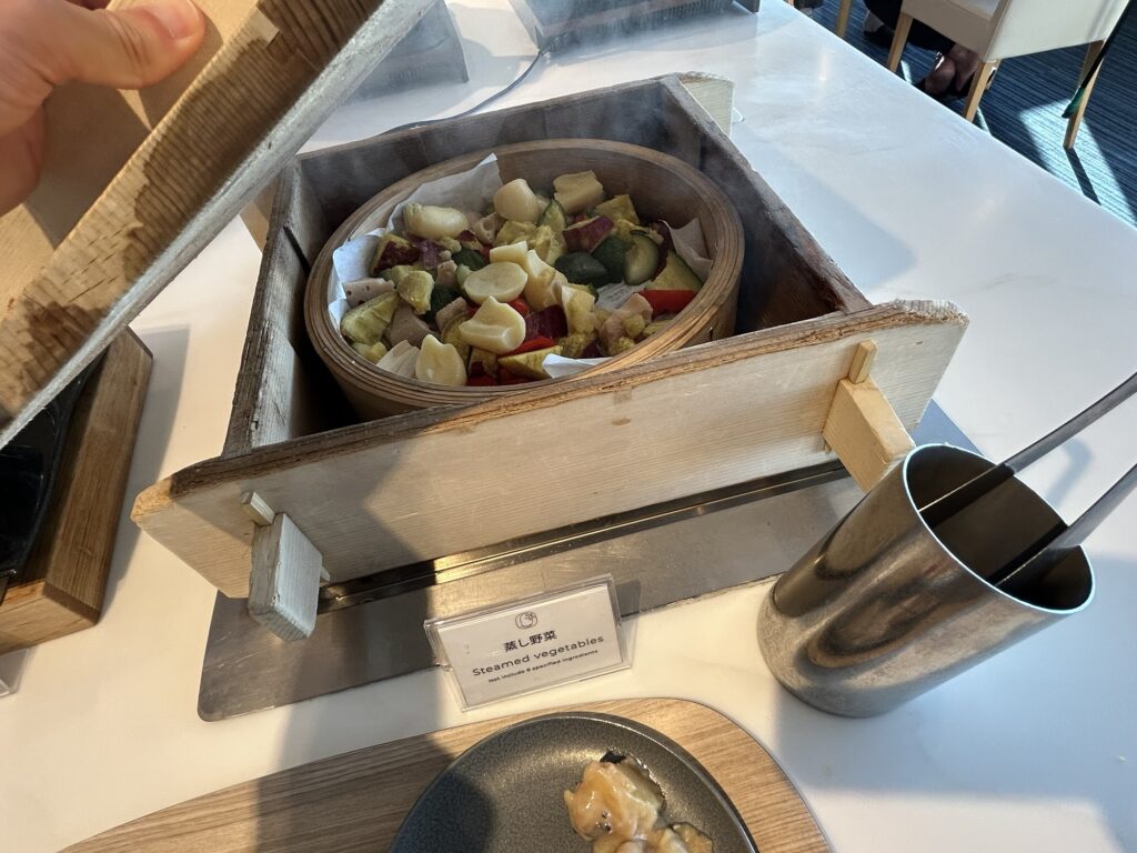 蒸し野菜!と言って近くの若い女性が喜んでいました。たしかに、なかなかビュッフェにないですよね。