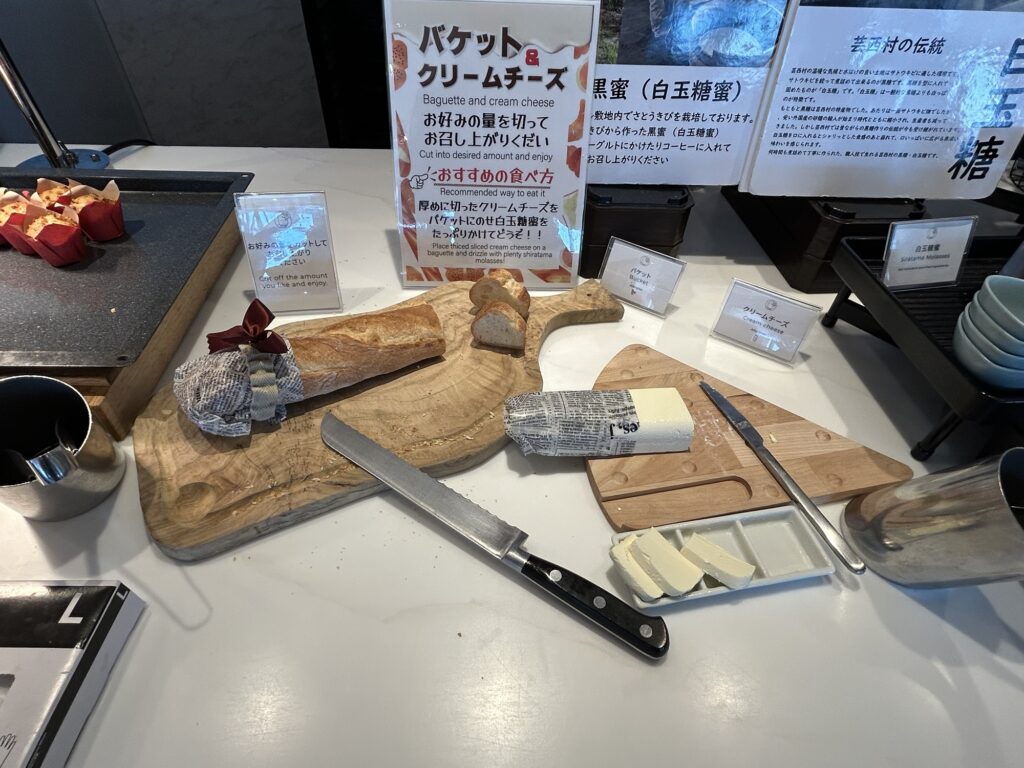 クリームチーズ自分で切っていいんです。え、食べちゃいますよ?と思って思う存分いただきました。至福の時間でした。